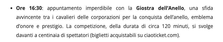 sbandieratori, corporazioni in costume e cavalieri che si sfidano nella Giostra dell’Anello.
