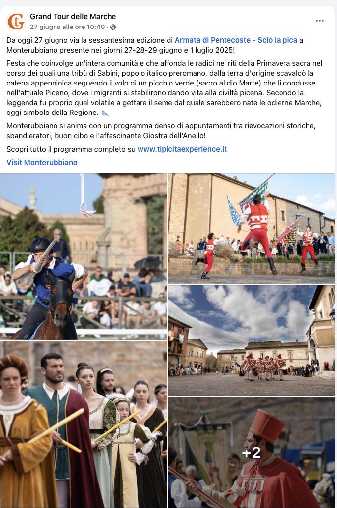 DAL 27 GIUGNO AL 1° LUGLIO IL GRAND TOUR DELLE MARCHE FA TAPPA A MONTERUBBIANO. IL BORGO SI VESTE DI RINASCIMENTO PER CELEBRARE LA SUA ANIMA PIÙ AUTENTICA: QUELLA DELL’ARMATA DI PENTECOSTE-SCIÒ LA PICA.