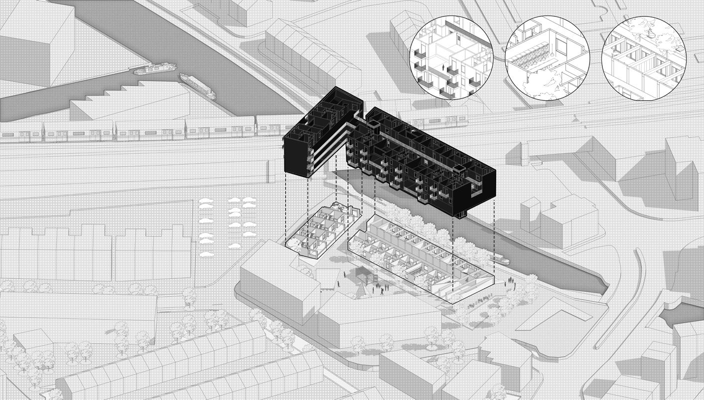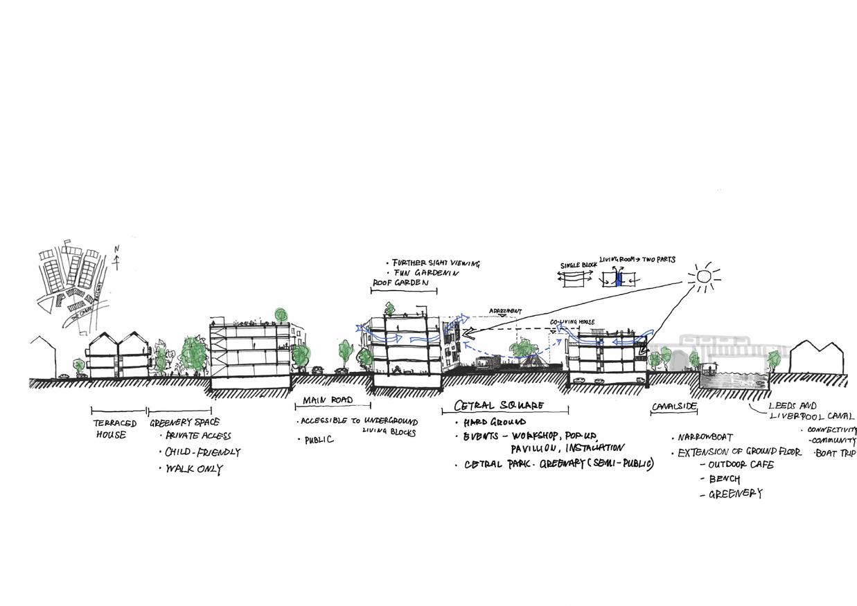 The purpose of this project is to regenerate the local community by collaborating with a non-profit organizations. In advanced, we visited the Birmingham real estate factory to learn about the new way of prefabricated construction method. My design determites to attract more young people, set up a central square that could host various activities, and build a co-living house suitable for all ages(in the next stage). At the same time, the semi-open space of each building on the ground floor is connected to the canal, creating a recreational space for multiple activities for the local community.