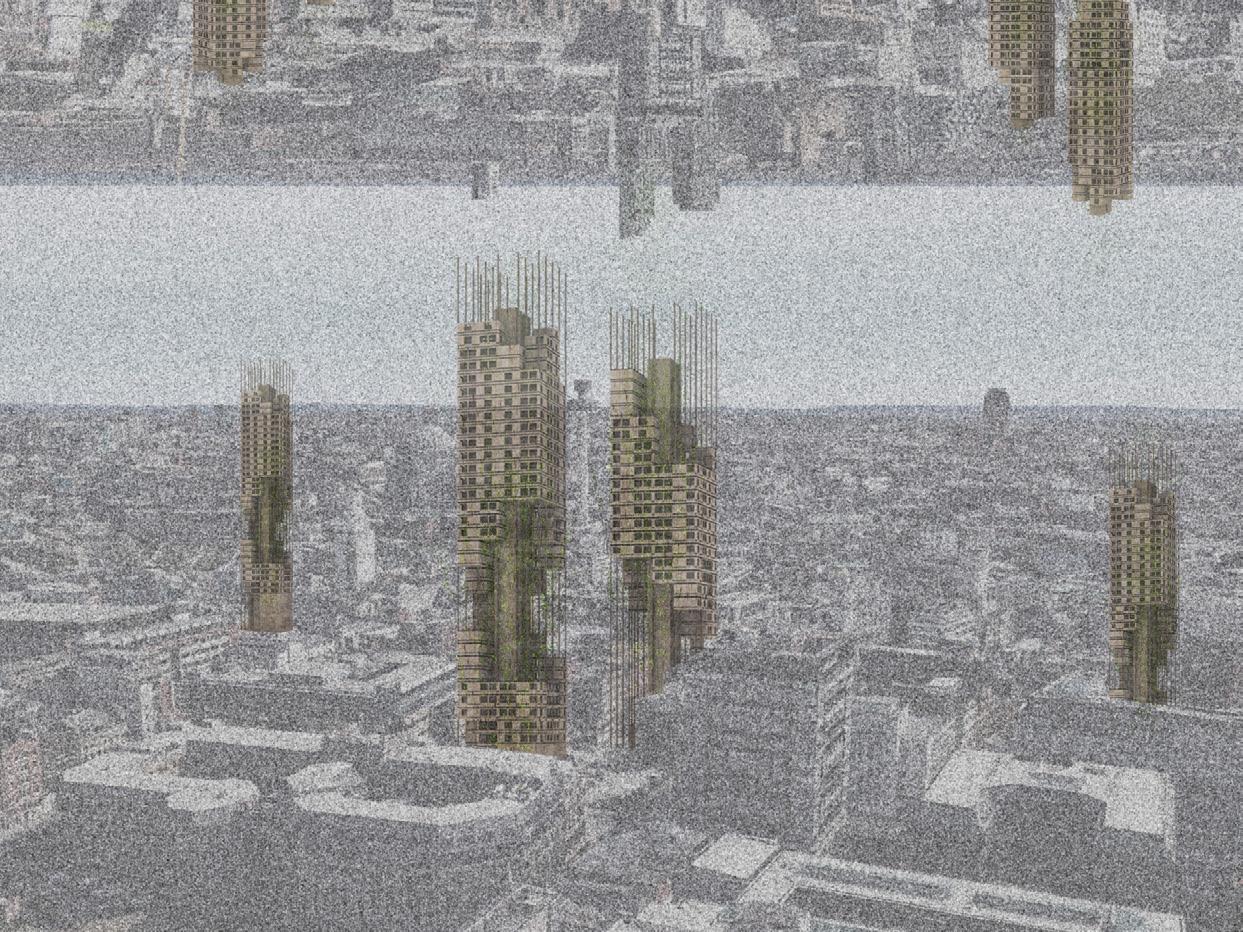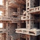 Text Prompt: Modularity (Form), Accumulation(Object), Porosity, Cyberpunk (Atmosphere) Rhino+Grasshopper Prompt: Modularity, Accumulation, Porosity, Timber AI enhanced form finding process (Concept-AI-Model- Materiality)