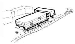 Foundation for the temporary building Boat Railway system connecting the building and river