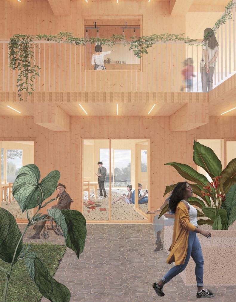 The purpose of this project was to regenerate the local community with non-profit organizations. In advanced, we visited the Birmingham real estate factory to learn about the new construction method. My design was to attract more young people, set up a central square that could host various activities, and build a co-living house suitable for all ages. All at once, the semi-open space on the ground floor is connected to the canal, creating a recreational space for multiple activities.