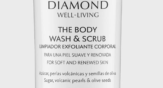 Dalla lussuosa linea Diamond, The Body Wash & Scrub per una spa experience a casa propria: a base di zucchero, perle vulcaniche e semi di oliva che eliminano le cellule morte e stimolano il turnover cellulare.