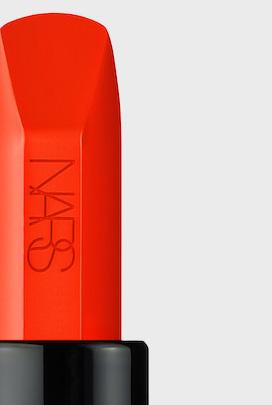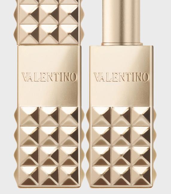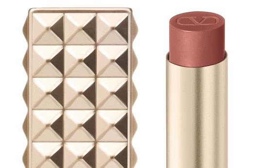 Astuccio monocromatico in alluminio dorato, interamente goffrato con le iconiche borchie della Maison, per il nuovo rosse o Spike che vanta una formula extra-mat, dunque opaca, ma al tempo stesso vibrante e long lasting.