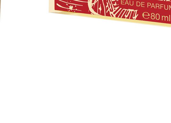 Una fragranza raffinata anche se ricca di contrasti. Con succose note di agrumi maturi che incontrano l’intensità di rosa, ambra e patchouli. Nel flacone con tappo scultura che, in occasione del Natale 2025, si veste con le morbide pennellate dell’illustratore Luke Edward Hall.