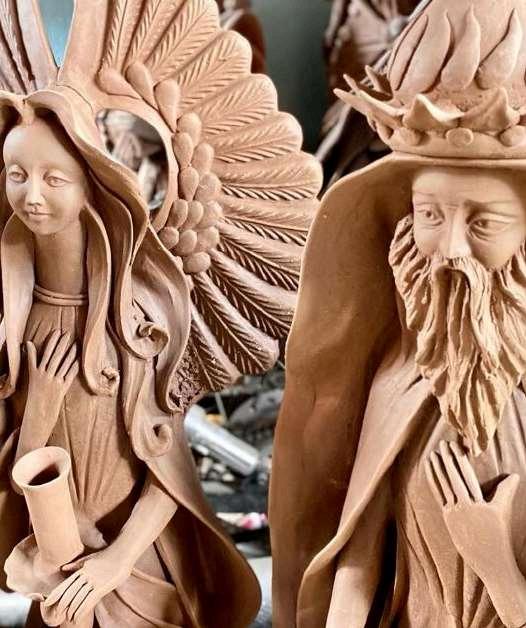 El proceso de creación de un nacimiento de barro es laborioso y requiere de gran destreza. Todo comienza con la selección del barro, un material que debe ser de alta calidad para garantizar la resistencia y la maleabilidad de las piezas. También se utiliza en la elaboración de la mezcla la flor de tule o “plumilla”, proveniente de regiones aledañas Luego, el artesano moldea cada figura a mano, cuidando los detalles en los rasgos y las expresiones de los personajes para darles realismo