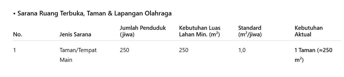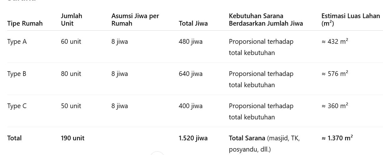 C. Analisis Kebutuhan Lahan ( hunian berdasarkan tipe ruang terbuka, sarana prasarana dll)