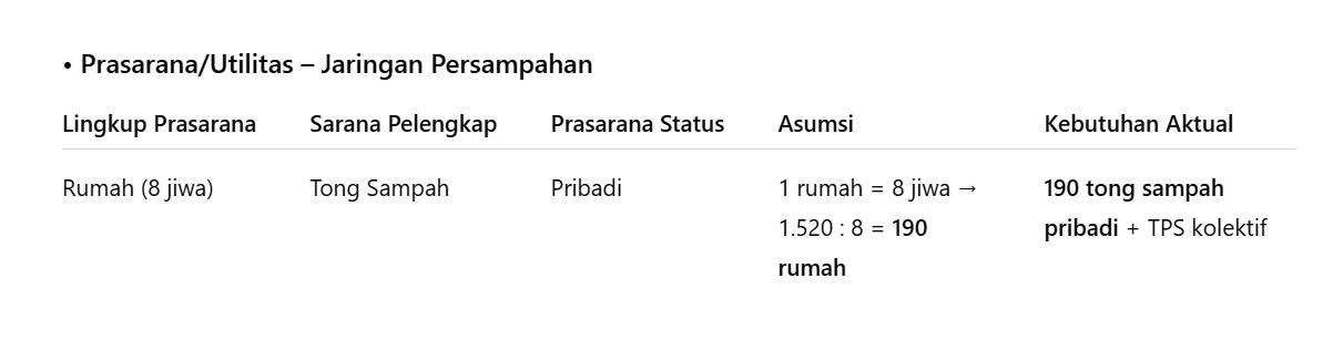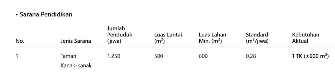 B. Analisis Kebutuhan Sarana dan Prasarana ( berdasarkan jumblah penduduk yang diasumsikan)
