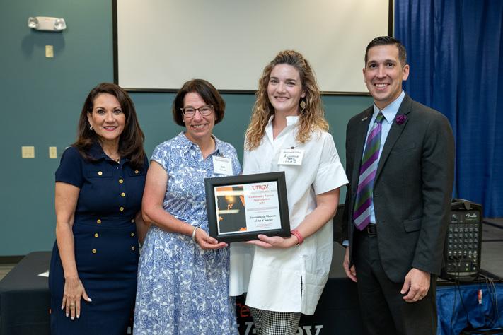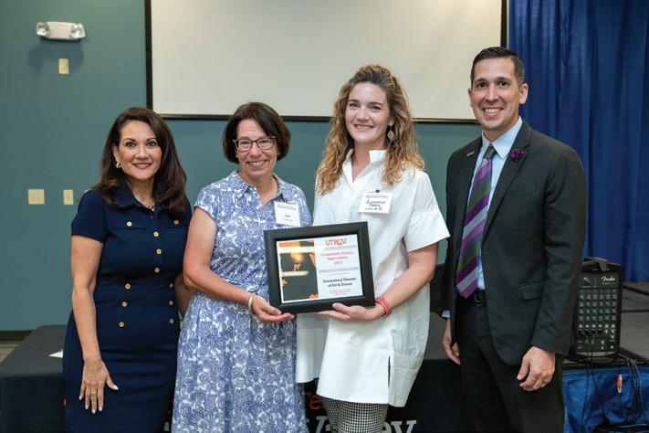 The IMAS was recognized by UTRGV Office of Community Engagement as a valued community partner for their work with Professor Juan Gonzalez in the Geology department. Receiving the award are Ann Fortescue and Anastasia Perez, pictured with Veronica Gonzales, Senior Vice President for Governmental and Community Relations, and Dr. Christian Corrales, Assistant Vice President Community Engagement.