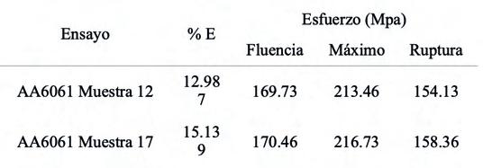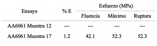 En la aleación de aluminio AA6061 el incremento de la temperatura y velocidad, como acción dinámica, generó regiones de transformación de fases muy rápidas que fragilizaron el material, generando una disminución de la ductilidad del material y en la resistencia a la tensión. Al realizar el tratamiento térmico T6, se visualiza el aumento de resistencia a la tensión y mejora de la ductilidad del material, concluyendo que el material a pesar de mejorar su densidad relativa y disminuir la cantidad de defectos, debe de realizársele un post tratamiento para mejorar propiedades, por la naturaleza del proceso.