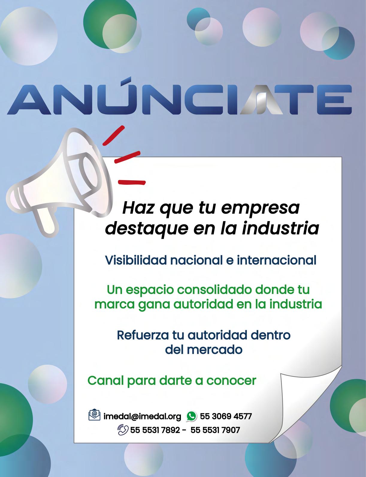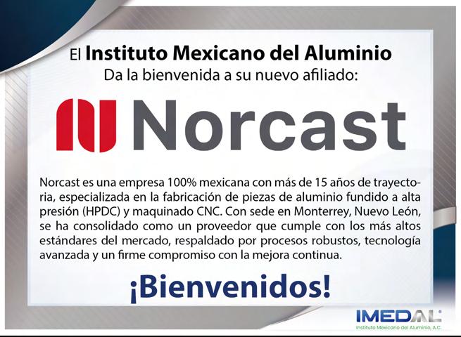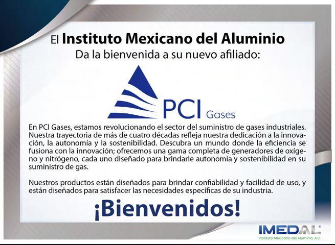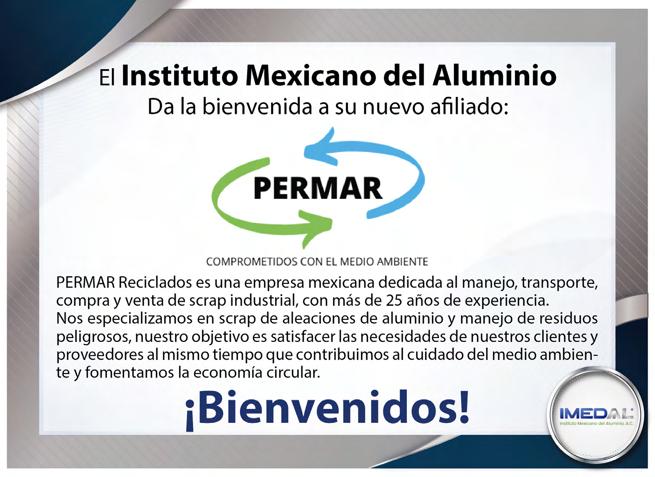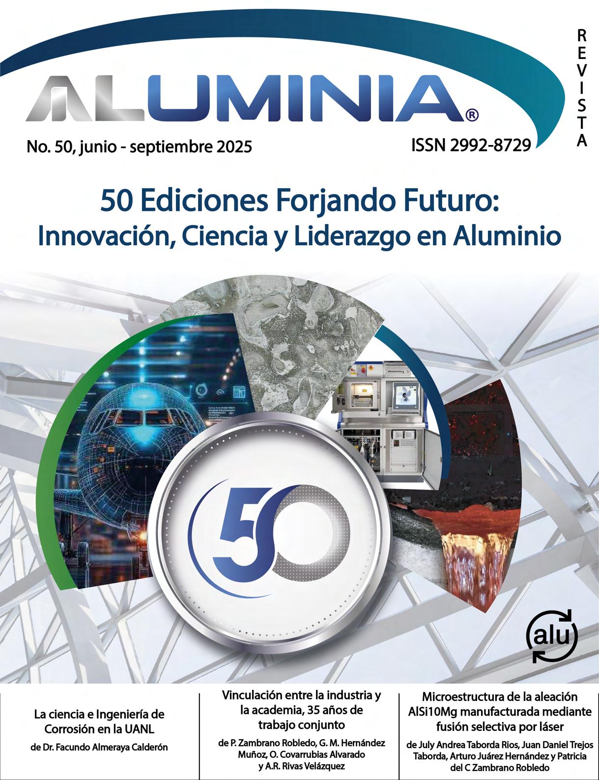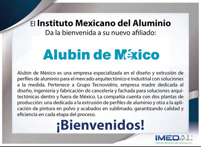 ALUMINIA, año 17, No. 50, junio - septiembre 2025, es una publicación cuatrimestral editada por el Instituto Mexicano del Aluminio A.C., calle Francisco Petrarca, 133 Piso 9, Col. Polanco, Alcaldía Miguel Hidalgo, C.P. 11560, Tel: (55) 5531-7892, www.imedal.org, imedal@imedal.org Editor responsable: Ing. Artemisa Alba Aguilar. Reserva de Derechos al Uso Exclusivo No. 04-2023-081817081400102 otorgado por el Instituto Nacional del Derecho de Autor, ISSN: en trámite ante el Instituto Nacional del Derecho de Autor. Responsable de la última actualización de este Número, Directora Ejecutiva, Ing. Artemisa Alba Aguilar calle Francisco Petrarca, 133 Piso 9, Col. Polanco, Alcaldía Miguel Hidalgo, C.P. 11560, fecha de última modificación, 30 de septiembre de 2025.
