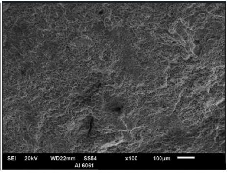 Figura 16. Fractografía del AA6061 cuando es sometido a fatiga. Se visualiza una fractura dúctil.