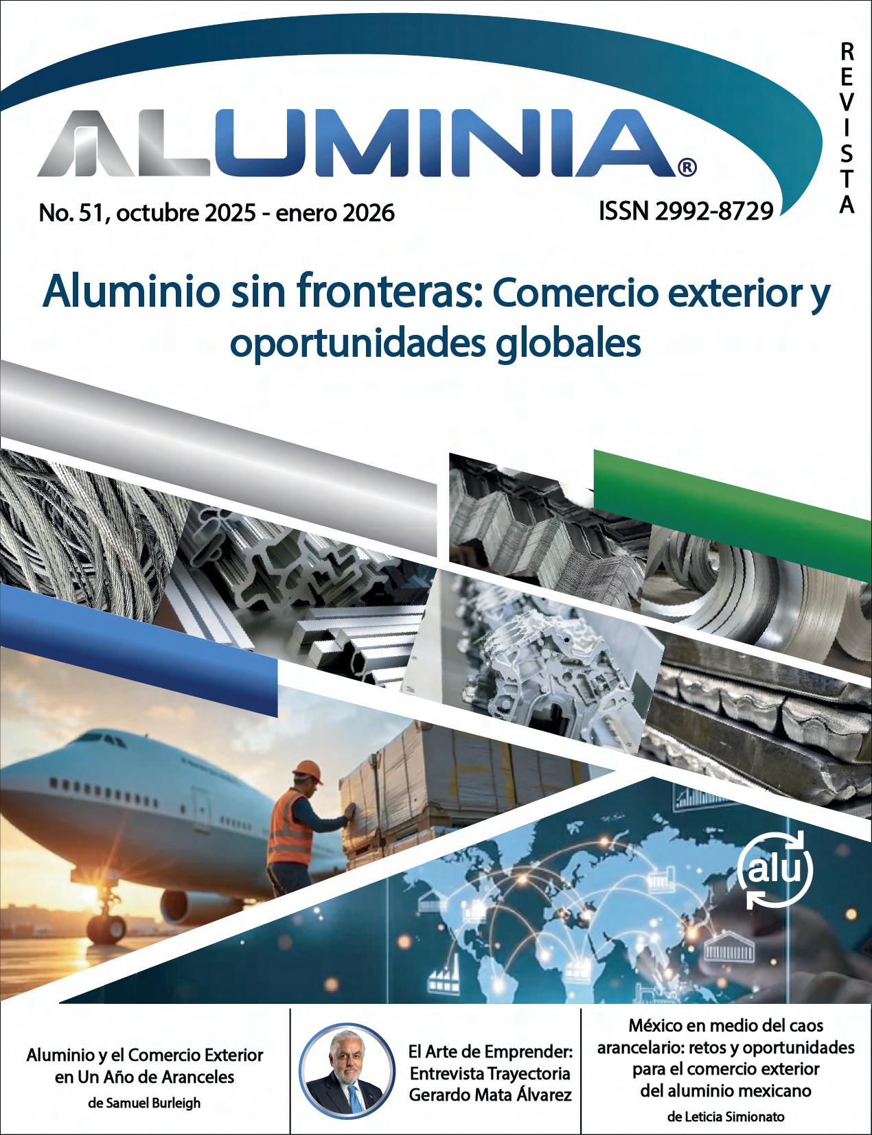 Estimados lectores, socios, investigadores y profesionales de la industria del aluminio, Con gran entusiasmo, presentamos la Edición 51 de ALUMINIA, un número que se adentra en el corazón de la dinámica global de nuestro metal, abordando en esta ocasión un tema que nos ha mantenido preocupados y ocupados a lo largo de todo este 2025: "Aluminio sin Fronteras: Comercio Exterior y Oportunidades Globales".