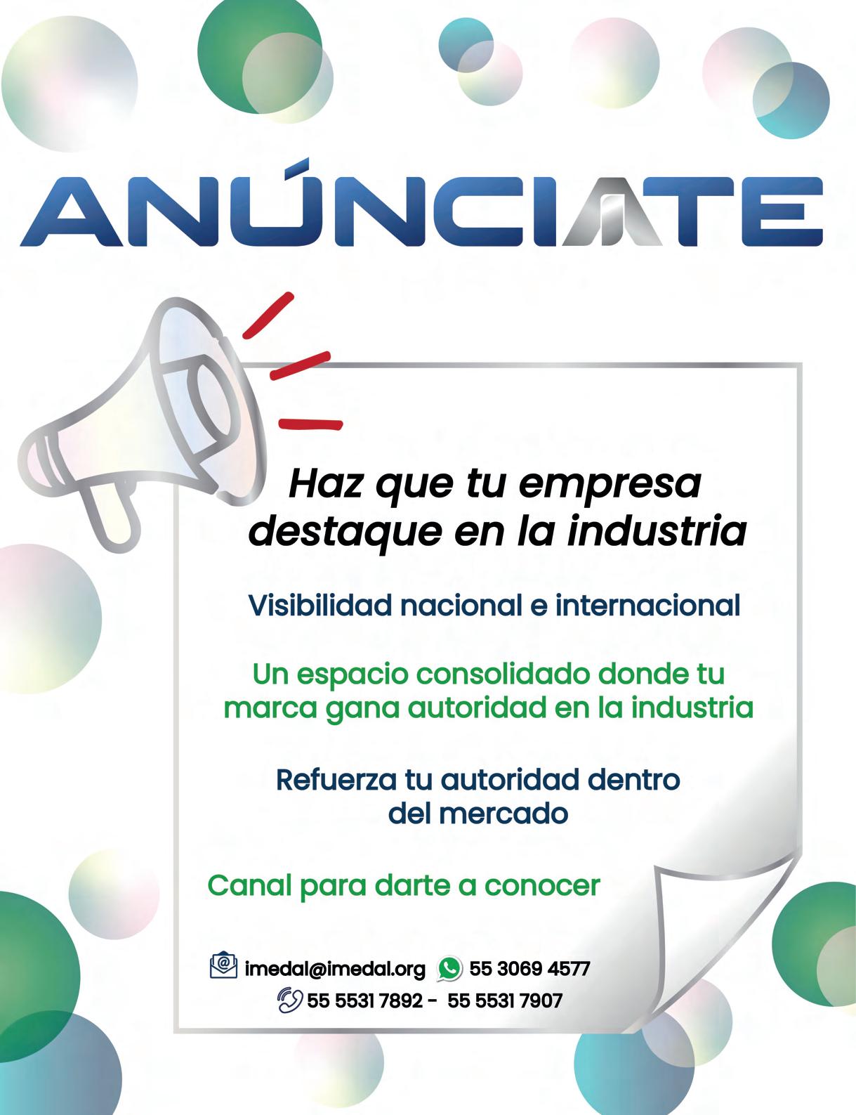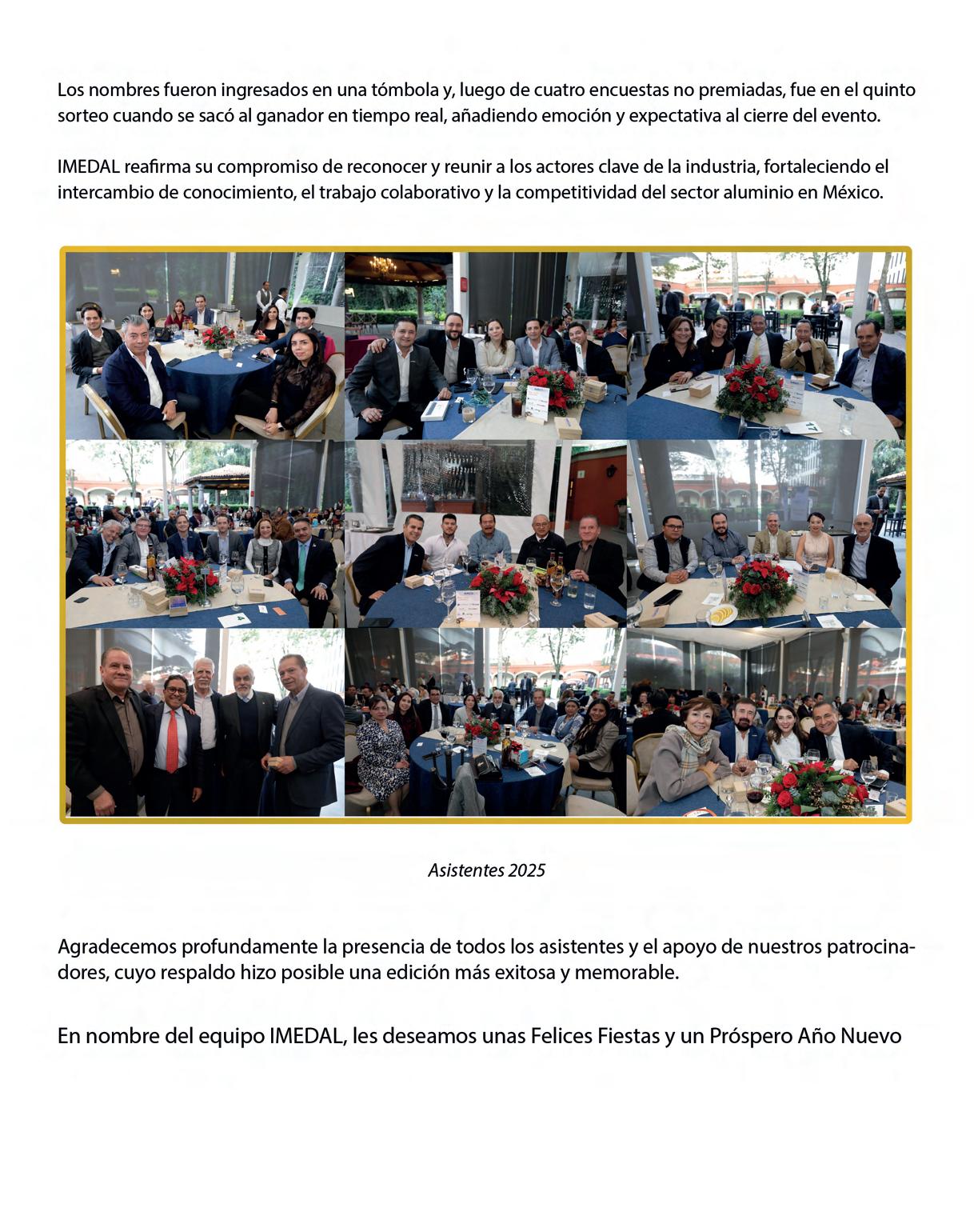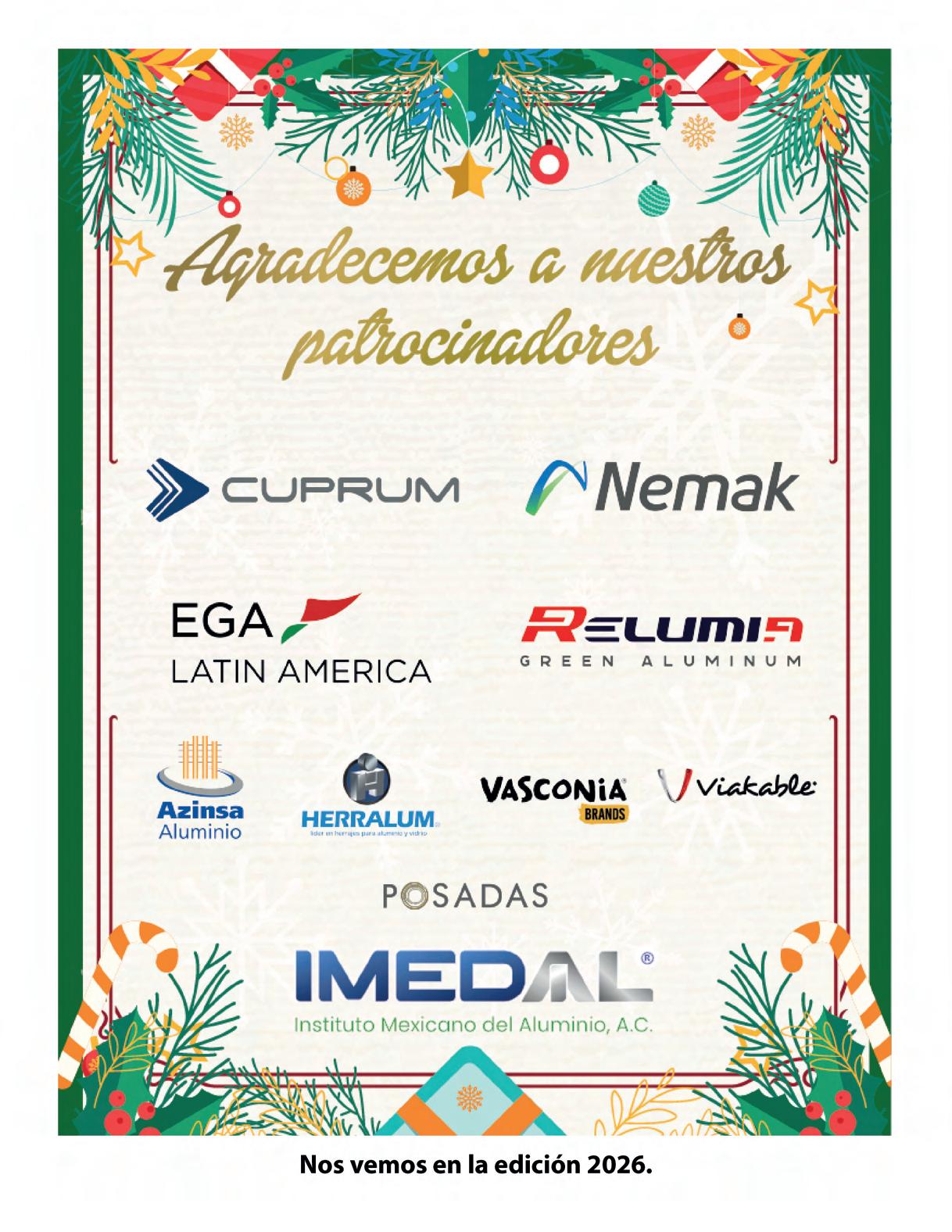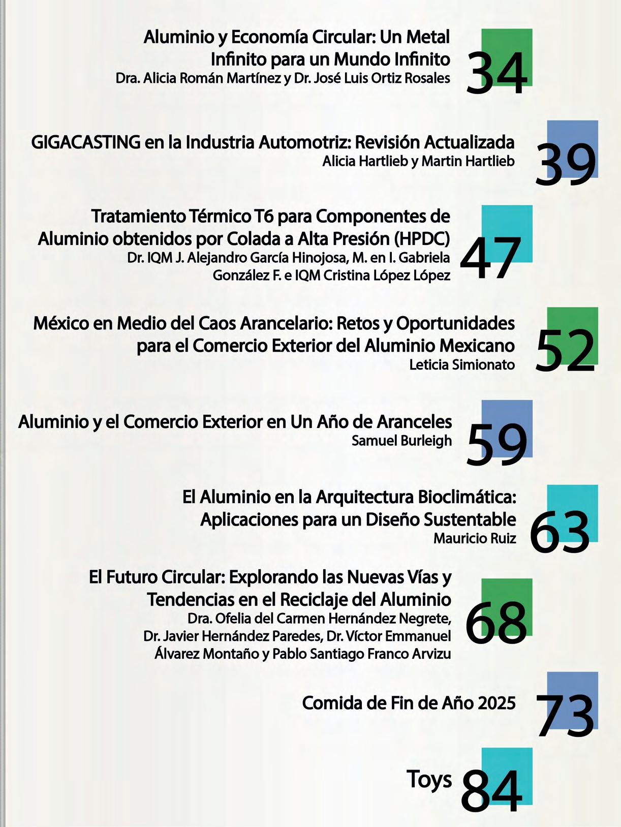 ALUMINIA, año 17, No. 51, Octubre 2025 - Enero 2026, es una publicación cuatrimestral editada por el Instituto Mexicano del Aluminio A.C., calle Francisco Petrarca, 133 Piso 9, Col. Polanco, Alcaldía Miguel Hidalgo, C.P. 11560, Tel: (55) 5531-7892, www.imedal.org, imedal@imedal.org Editor responsable: Ing. Artemisa Alba Aguilar. Reserva de Derechos al Uso Exclusivo No. 04-2023-081817081400102 otorgado por el Instituto Nacional del Derecho de Autor, ISSN: 2992-8729 ante el Instituto Nacional del Derecho de Autor. Responsable de la última actualización de este Número, Directora Ejecutiva, Ing. Artemisa Alba Aguilar calle Francisco Petrarca, 133 Piso 9, Col. Polanco, Alcaldía Miguel Hidalgo, C.P. 11560, fecha de última modificación, 5 de diciembre de 2025.