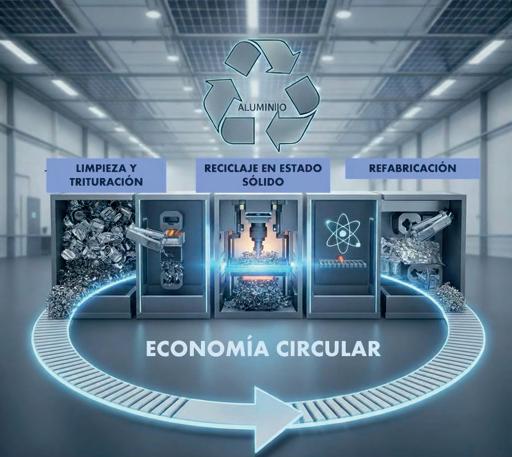 Para abordar la alta huella de carbono y gestionar el creciente volumen de residuos, este artículo destaca las Técnicas de Reciclaje en Estado Sólido como la solución disruptiva. Al evitar la fusión, las técnicas de reciclaje en estado sólido pueden consumir hasta un 98% menos de energía que la producción primaria, logrando un rendimiento de material superior y manteniendo la calidad de la aleación. Estas técnicas, que incluyen la deformación plástica severa, el laminado, la consolidación por fricción y la metalurgia de polvos, tienen el potencial de refinar la microestructura, produciendo materiales reciclados con propiedades iguales o superiores a los tradicionales. La adopción del reciclaje en estado sólido es una alternativa para un reciclaje de ciclo cerrado, aunque su escalabilidad y la gestión de impurezas de la chatarra post-consumo son desafíos clave para su plena implementación.