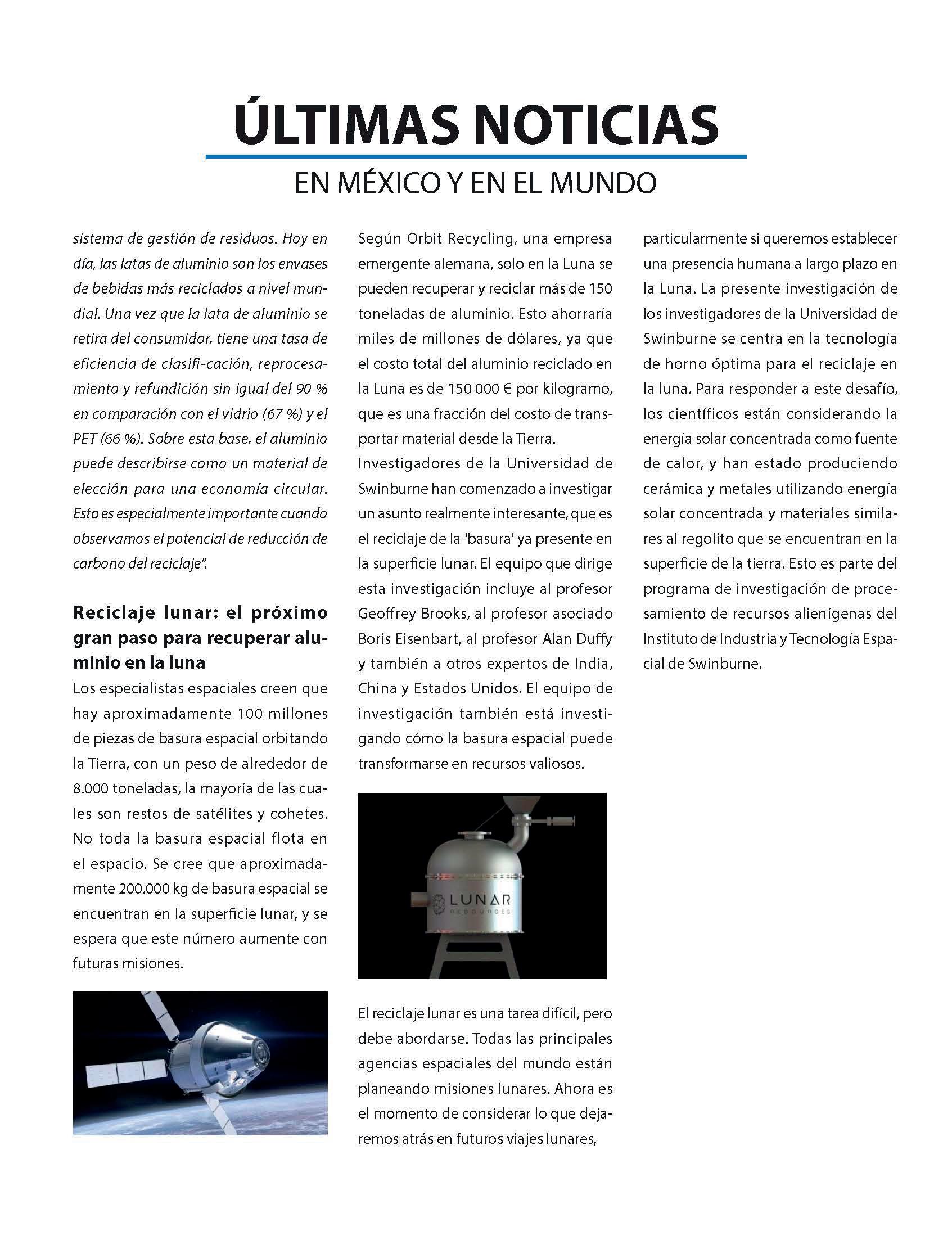 El artículo resalta el potencial del aluminio en una economía circular, destacando su capacidad infinita de reciclaje sin perder calidad. Se enfoca en el contexto global, con énfasis en Europa y América del Norte, así como en la situación específica de México. Se discuten planes de acción europeos para alcanzar una circularidad plena del aluminio para 2030, junto con oportunidades de crecimiento en América Latina y el Caribe.