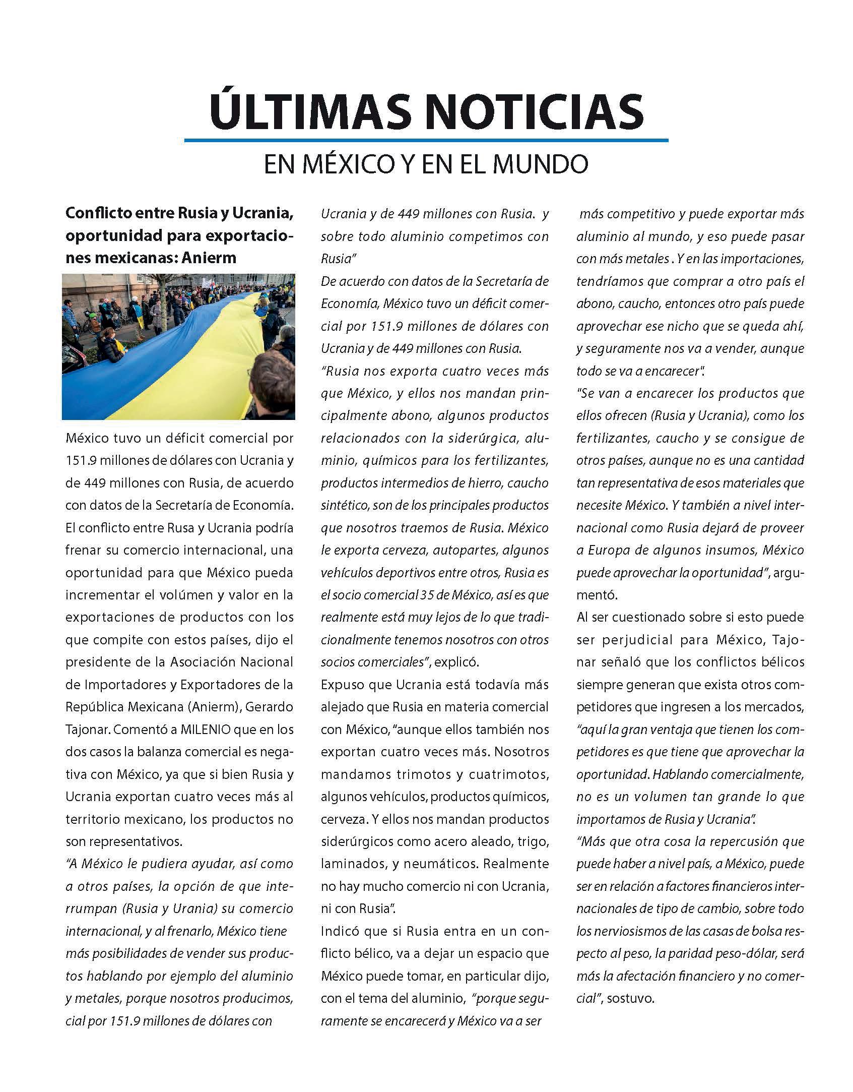 En el mundo prevalece el temor de que la espiral inflacionaria y los episodios de escasez, comprometan la recuperación económica. Estos factores forman parte de las agendas públicas de la mayor parte de los países desarrollados y con ello, las tendencias regulatorias se inclinan a buscar un desarrollo más equitativo y sustentable. También en temas internacionales, la resolución del panel interpuesto por México y Canadá contra la interpretación de las reglas de origen aplicadas al sec tor automotriz en el marco del T-MEC. En nuestro país, la agenda pública está centrada en una sucesión presidencial anticipada. El año se inauguró con un nuevo esquema fiscal que crea el Régimen simplificado de confianza, se adoptaron nuevas sanciones por incumplimiento y delitos fiscales, así como la información del transporte de mercancía con la Carta Porte.