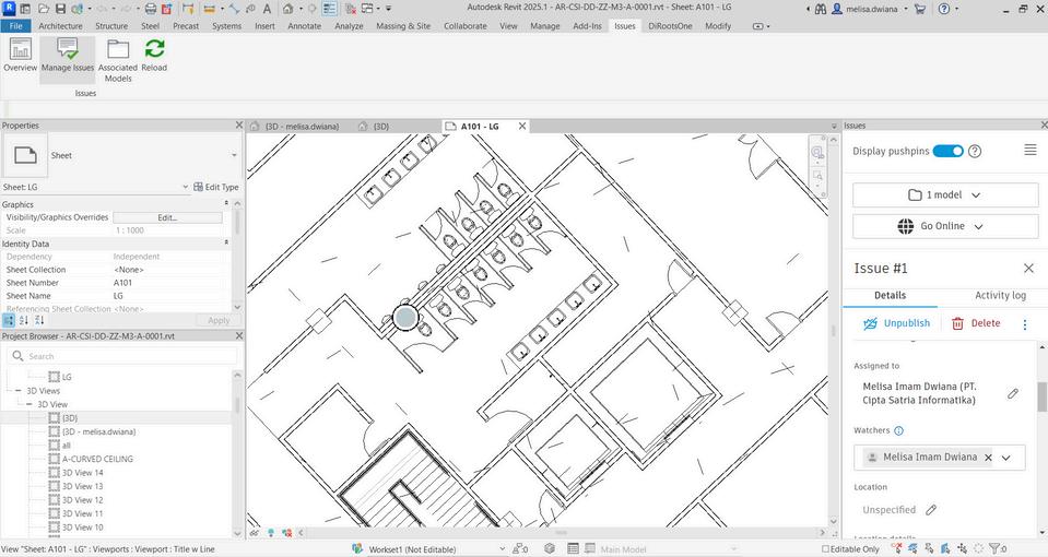 Clashes that need coordination or fixing are assigned as issues to the respective disciplines in Model Coordination. The issues received from other disciplines are addressed and resolved in Revit. To track the location of each issue, the Issue' add-in in Revit is used.