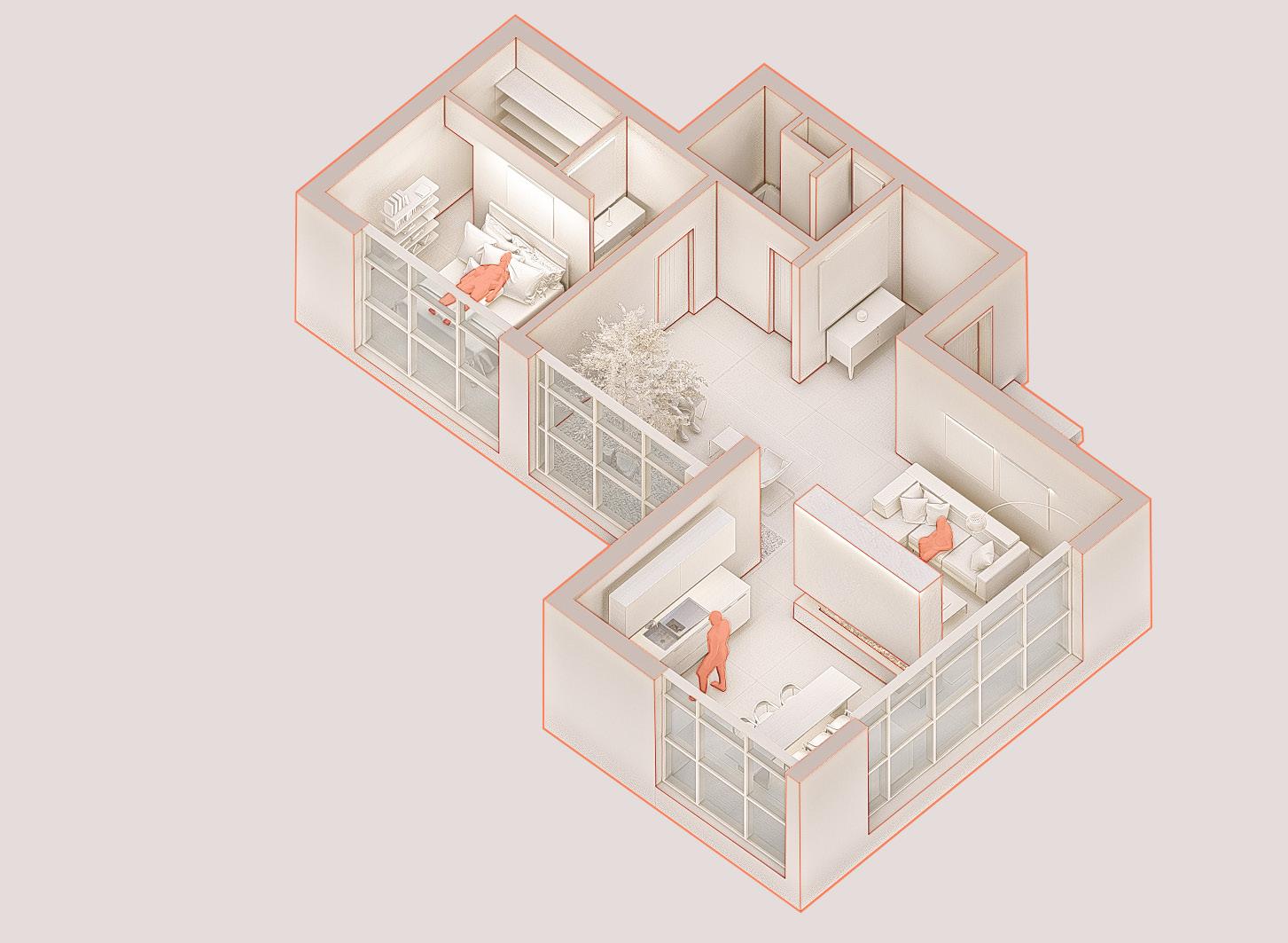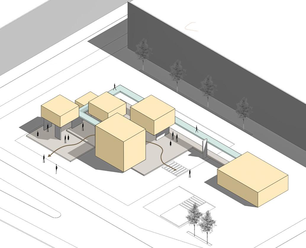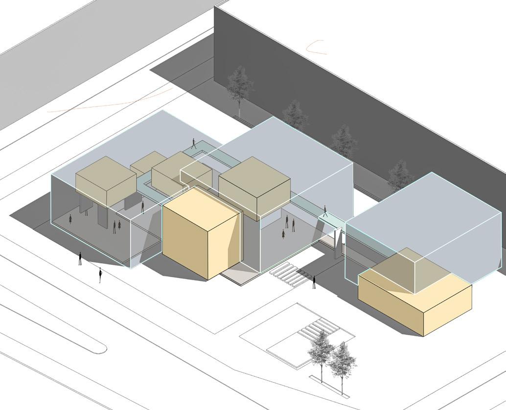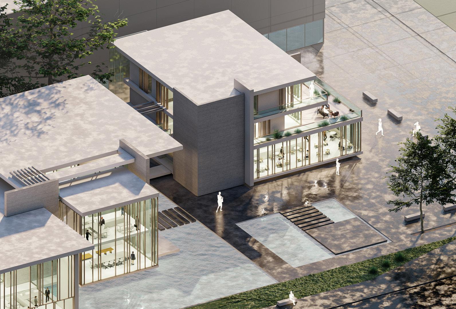 The project draws inspiration from the «box within a box» concept to create a stimulating and flexible environment tailored to the diverse needs of its users. Inside a large modern concrete structure, a series of smaller glass volumes are arranged, forming modular workspaces. Each internal box offers a distinct setting: individual offices for concentration, collaborative meeting rooms, and relaxation areas. These spaces are connected by bright corridors, encouraging circulation and interactions among users.