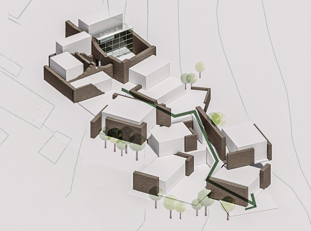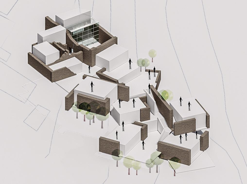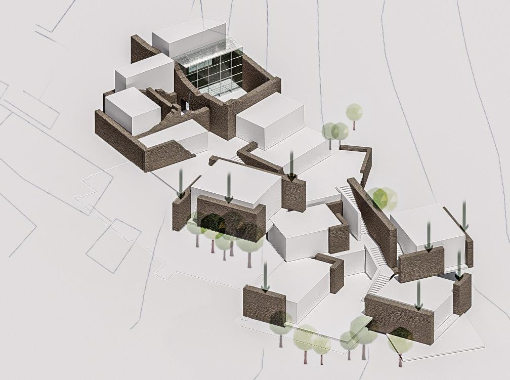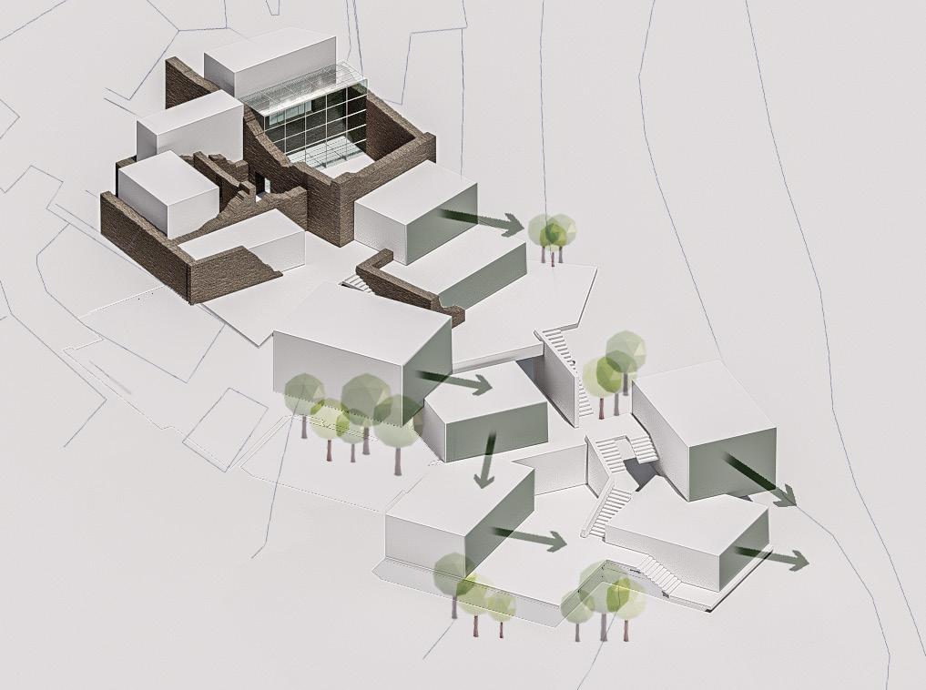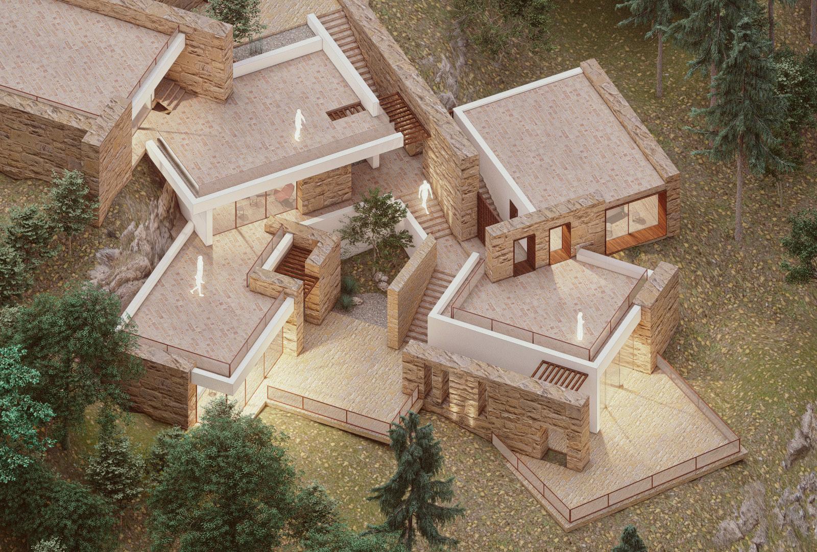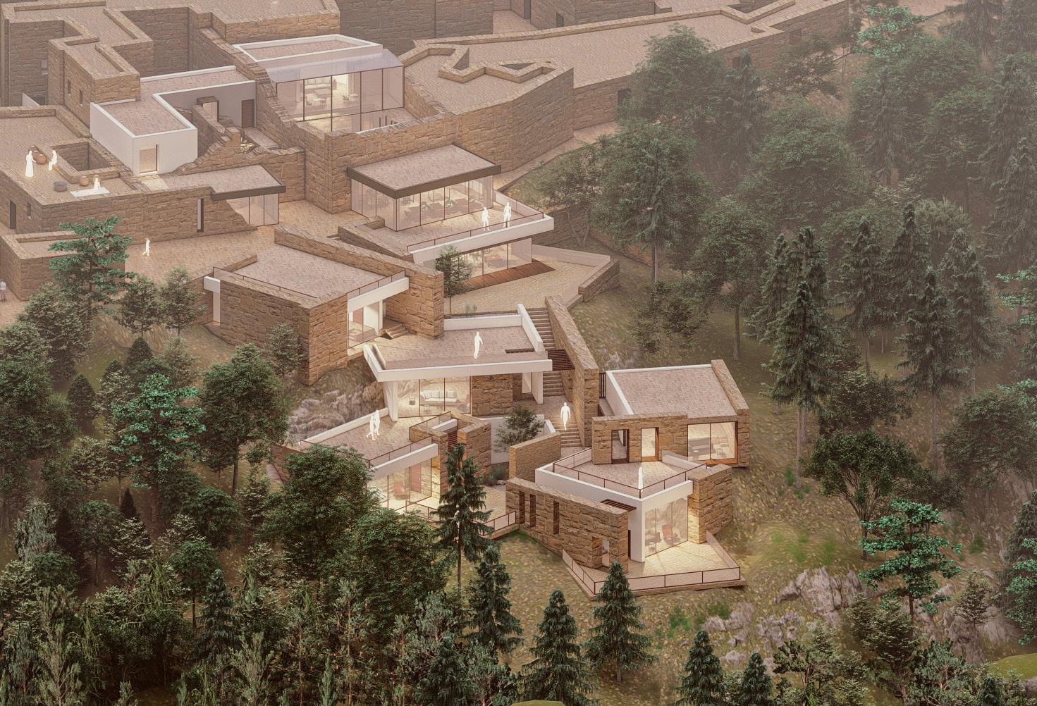 The architectural design of the project not only respects the cultural heritage of Kesra but also enhances the experience of its stunning natural surroundings. By incorporating discovery pathways that meander through the site, visitors can engage with the landscape at a leisurely pace, encouraging exploration and connection with the local environment. Accessible rooftops are thoughtfully integrated into the design, offering breathtaking views of the lush woodlands that envelop Kesra. These elevated spaces serve as vantage points for reflection and appreciation of the area’s natural beauty, allowing users to immerse themselves in the serene atmosphere. With seating areas and gardens on the rooftops, the architecture fosters a sense of community and invites social interactions, transforming the site into a vibrant gathering place.