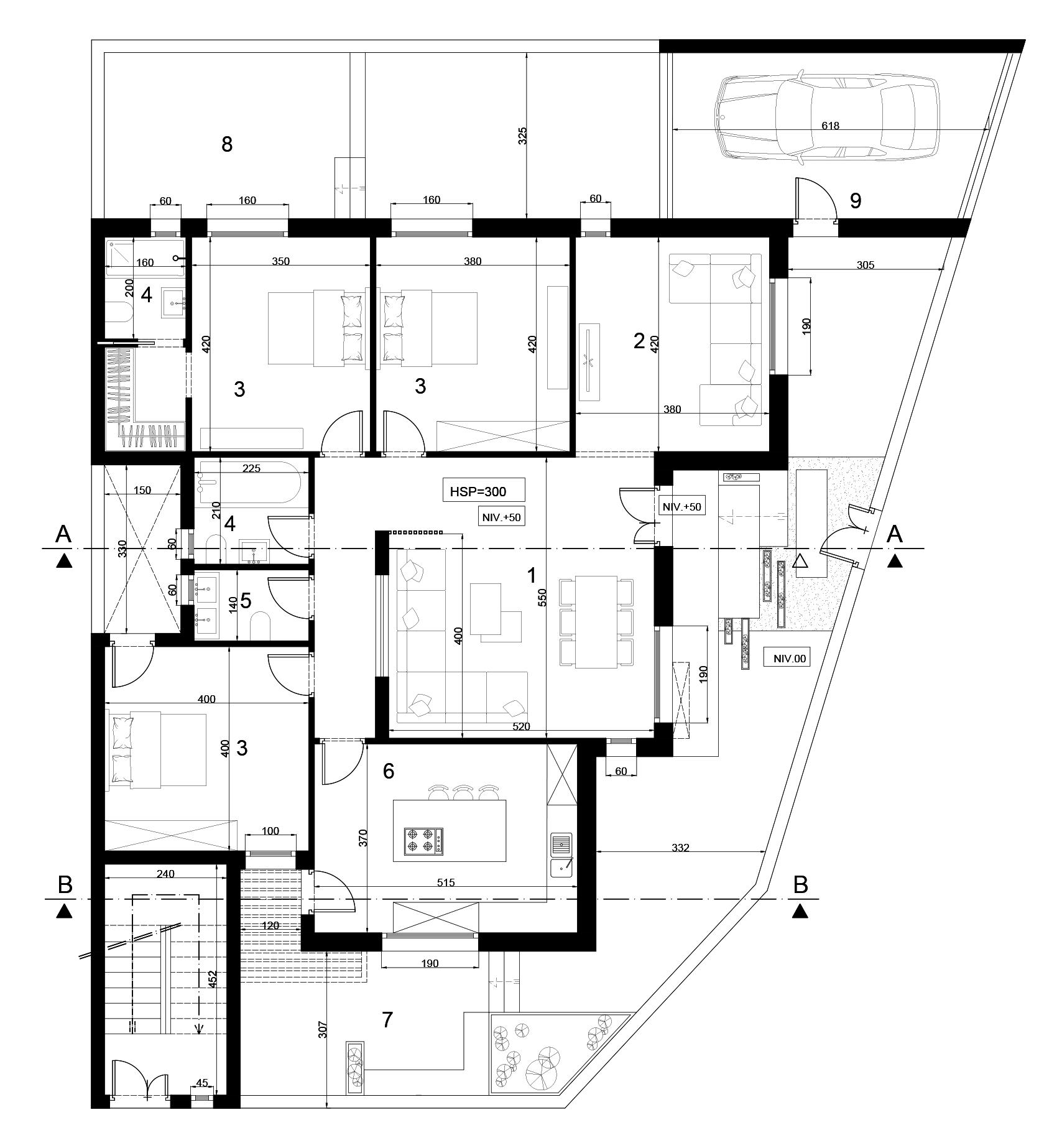 Garage Ground floor : Plan at ± 0.00m