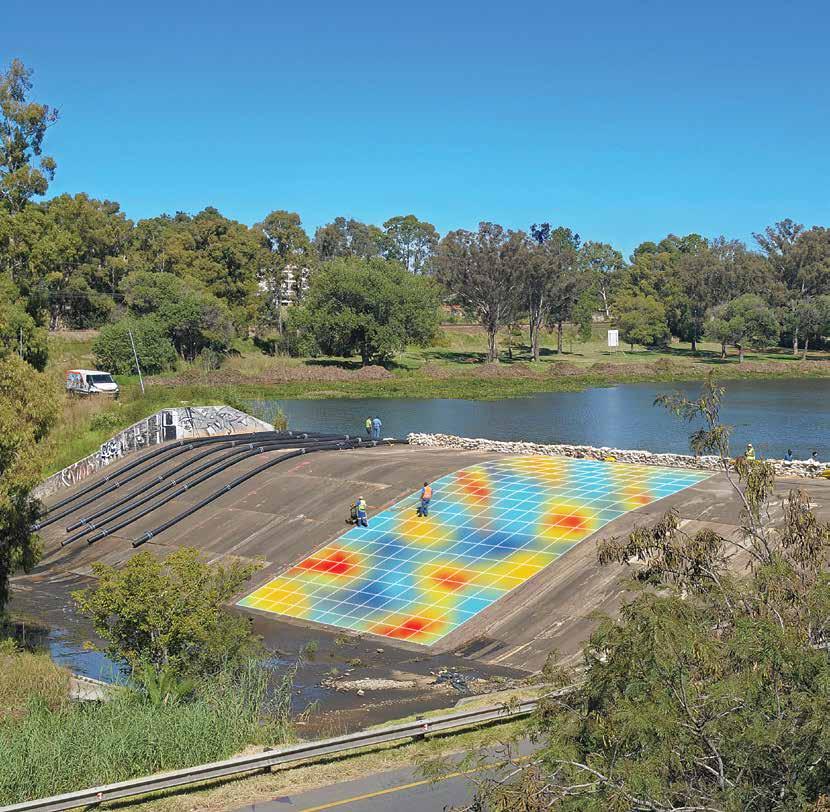 reported from a ground-penetrating radar survey will help to pinpoint anomalies in the concrete spillway structure at Middle Lake Dam in Benoni, which recently suffered significant erosion damage. This emergency situation required urgent action to reduce the risk of potential failure of the