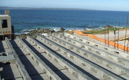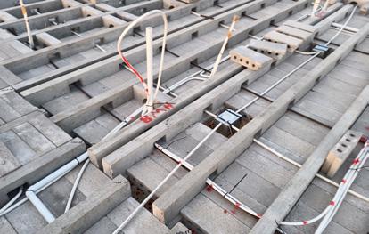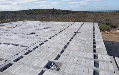 compression blocks are not used. Instead, wet concrete is cast on top of the filler blocks until it reaches a level 20 mm above the top of the T-beams to accommodate the steel mesh. However, almost every client prefers using compression blocks because they are so easy