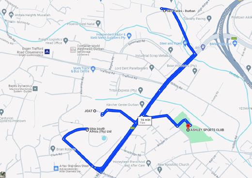 Checkpoints were hosted by event sponsors SBS Tanks, JOAT, and Sika, at their facilities within the Pinetown area, with Denso hosting checkpoint four at the finish line at Ashley Sports Club.