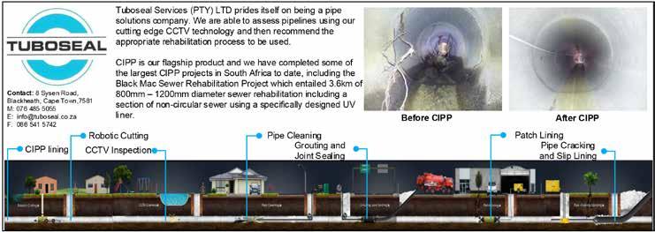 INDE x TO a D v ERTISERS Aecom 19 African Construction Expo 56 Ammann Construction Machinery SA 48 APE Pumps 29 BBF Safety Group 38 ELB Equipment 52 ERWAT 4 Flowtite 14 Hidro-Tech 9 IMESA 22, 24, 55 KSB Pumps and Valves 2 Logical Waste 25, 27 Mariswe OFC Maxal Projects SA 10 Model Maker Systems 53 Mozambique Ports/Rail Evolution 31 Neil Lyners and Associates 12 Old Mutual 42 Power & Electricity 32 Rocla 46 11 - 13 June 2019 Gallagher Convention Centre Johannesburg, South Africa • Reach 2 Million Prospective Buyers • 36 Years of Experience in Organising Events • Dedicated Exhibitor Marketing Services • Unparalleled Networking Opportunities • Strong Government Alliances Benefits of exhibiting with us Grow your business in Africa’s multi-billion construction sector www.africanconstructionexpo.com Organised by: BOOK YOUR STAND TODAY MarcelDuToit@dmgevents.com +27 21 700 5500 Get in touch to get a tailored exhibiting or sponsorship package to ensure that you achieve the maximum benefits from the expo. SAPPMA 34 SBS Water Systems IFC Sika 47 Sizabantu IBC Southern Pipeline Contractors OBC SRK Consulting Engineers 40 Structa 35 The Concrete Institute 45 Tuboseal 21 Veolia Water Technologies 8 Wirtgen 51