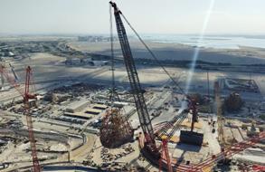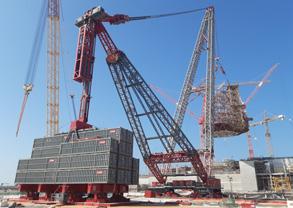 the structure. The heaviest lift reached 612 tonnes, with a working lift radius of over 150 m.