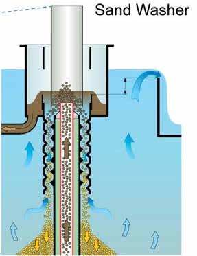 The Dynasand Continuous flow filter is a well proven technology augmented by the latest water filtration innovations consisting of an Open Vessel with low head. Water can be pumped into the system, or should the location allow, be fed by gravity. It runs by simple operation without any moving parts. In addition, the need for back wash pumps and operations is eliminated. Only air is added to the air lift pump, resulting in a highly reliable and consistent filtration quality. There is no “first filtrate” and there is no filtration interruption for back-washing. Continuous Contact filtration occurs, and no pre-sedimentation is required where incoming flows have a turbidity of up to 60 NTU for potable water. Footprint is also reduced by up to 50%, due to the higher capacity per unit of filter area.