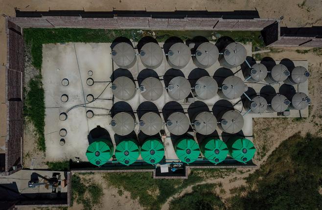 “The stormwater infiltrating through the ground provides higher moisture content. Moreover, the voids of the pervious concrete allow the necessary air for roots to breathe and grow into trees and plants. In low rainfall areas, pervious concrete can consequently increase the groundwater table,” Perrie continues. Although not strong enough for heavytraffic pavements, pervious concrete has been successfully used for low-volume roads, driveways, sidewalks, golf cart paths, retaining walls, slope protection, and as French drains.