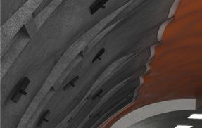 Six transverse cantilever beams support each walkway slab. They include voids in the concrete to save weight and make provision for future service pipes. The cantilever beam reinforcing was spliced together with the Y20 rebar rods which had been cast into the top deck. They were also spliced with R20 inclined pull-out rebar, which extended from the bottom of the edge beams.