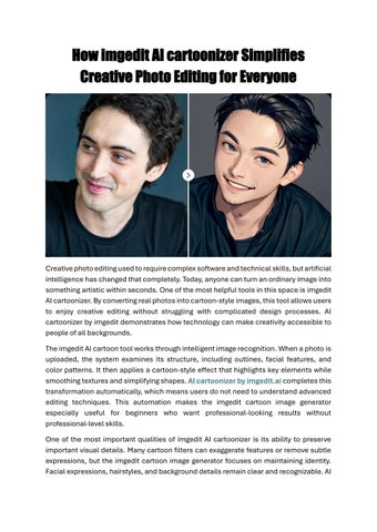 Creative photo editing used to require complex software and technical skills, but artificial intelligence has changed that completely. Today, anyone can turn an ordinary image into something artistic within seconds. One of the most helpful tools in this space is imgedit AI cartoonizer. By converting real photos into cartoon-style images, this tool allows users to enjoy creative editing without struggling with complicated design processes. AI cartoonizer by imgedit demonstrates how technology can make creativity accessible to people of all backgrounds.