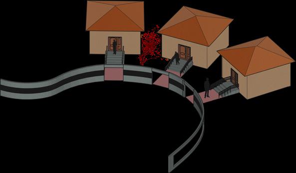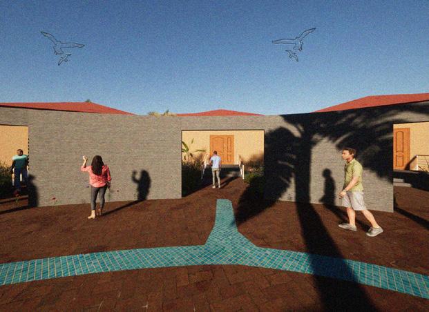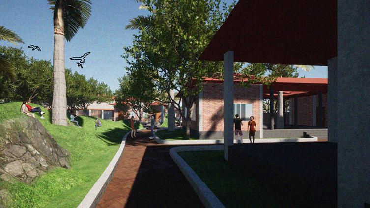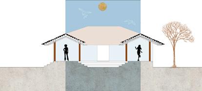 Accommodation is separated from other spaces by creating mounds with acts as a visual barrier wherein the people living in accommodation space can sit on the other side of the mound.