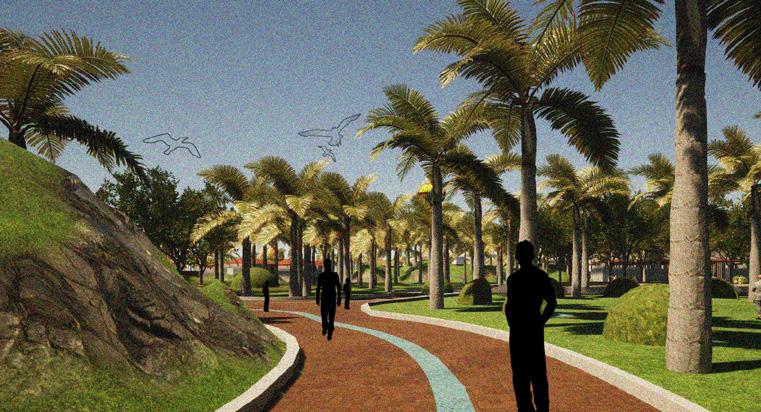 Having mosaic chips in pathways will allow the tourist to navigate eaasily as it shows which places to go and where not to also they play a role of rivers.
