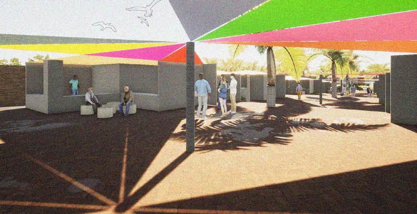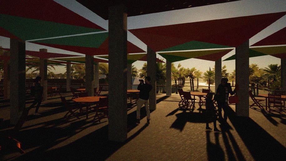 Food court is designed keeping in mind the journey of a visitor from start to end as they end their journey here, the outdoor seating has a beach view for a soothing meal, and a colourful experience with the free flowing fabric roof.
