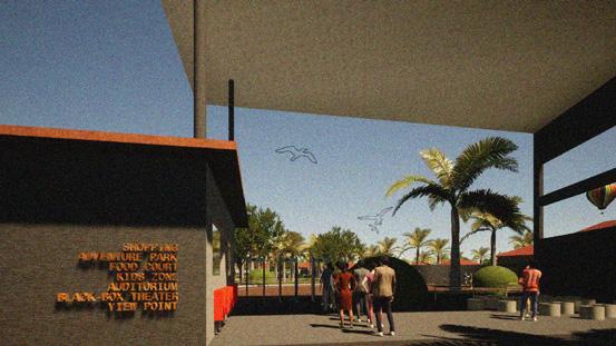 As the tourist enter they are attracrted by the panaromic opening which has the scene setup and then the information wall which has three openings providing information but a bit inside leading them to the galleries, then they continue the journey gathering information which lead up to another scene setup which forms the street, which has Karnataka traditional houses as studios on both the sides with a narrow street leading them to the auditorium and further to the retail space.