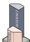 The Convergence is a vertically integrated urban community blending residential, hospitality, and shared amenities. A central tower hosts both apartments and a hotel, while four mid-rise clusters offer diverse residential units. Hotel guests occupy a separate, shorter tower with exclusive amenities like concierge and curated events. Across all user types, rooftop lounges, co-working areas, wellness zones, and social hubs like the pool and party lounge foster community and flexibility. The design supports a hybrid lifestyle, creating a microcosm of the modern, connected city.