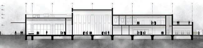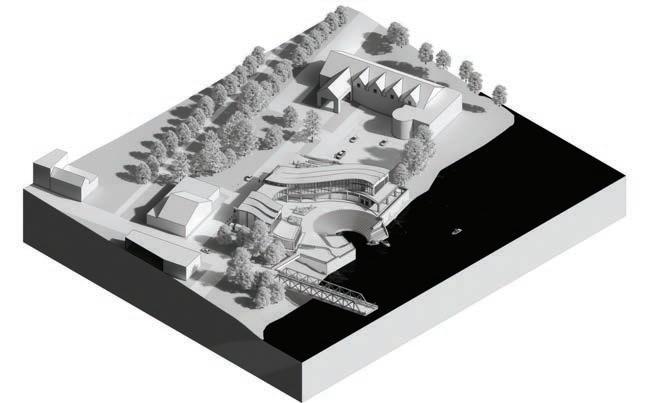 The primary objective of this project was the seamless integration of the proposed structure into the historic fabric of Lambertville, New Jersey, avoiding the imposition of a visually intrusive modern landscape. The design sought to assimilate elements derived from the contextual surroundings, including influences from the historic bridge, the Delaware River, and the neighboring city of New Hope, Pennsylvania. Elevating the building above the existing topography effectively addressed flood-related concerns, considering data for both 50 and 100-year flood occurrences. Furthermore, the terracing on the riverside not only serves a dual purpose by mitigating flooding but also functions as a versatile space, encompassing a boat dock and an amphitheater for communal use.