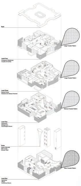 The project placed significant emphasis on sustainability, design, and programming, with resilience emerging as the pivotal aspect of the building’s core principles. The site was strategically elevated, incorporating wind and solar generation, and augmented by the strategic planting of trees along its borders to serve as the primary line of defense. The challenge of designing to withstand natural disasters, particularly hurricanes, was effectively met through the integration of onsite generated energy and a water collection system. The use of concrete as the core material enhances resilience against floods, while the facade design serves a dual purpose: acting as a defense against debris and concealing flood lines.