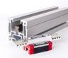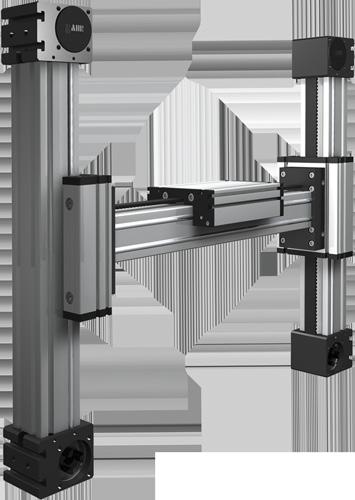 Spindelgetriebene Linearachsen mit quadratischem Aluminiumprofil.