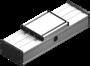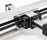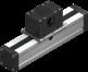 • Der Führungsschlitten wird mittels eines innenliegenden, umlaufenden Zahnriemens auf einer integrierten Schienenführung bewegt