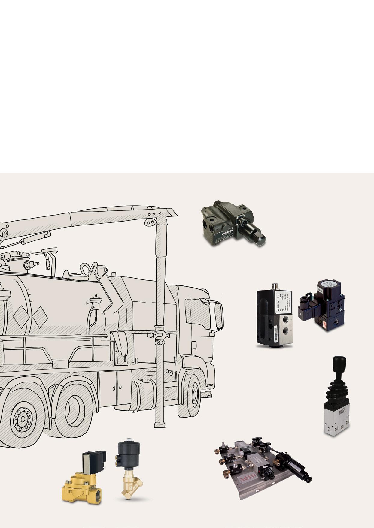 • Our proportional pressure control products have helped to extend the life of cleaning brushes and high pressure jets in a range of specialist municipal vehicles across the world.