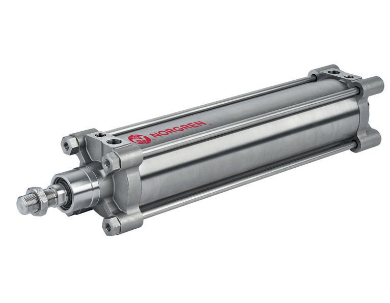 Este cilindro tiene una construcción robusta con tirantes, ideal para aplicaciones industriales. Disponible en todos los tamaños de orificio con una amplia variedad de variantes, opciones y montajes, se puede adaptar para resolver los desafíos de actuación más difíciles. Viene con sistema de amortiguación adaptable.