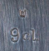 Silber, innen vergoldet; auf der Unterseite gemarkt mit Dianakopfpunze, „WW“, Rosenmarke, Silberschmiedmonogramm „JH“ für Josef Hossfeld und Entwerfermonogramm „COC“; H. 10 cm
