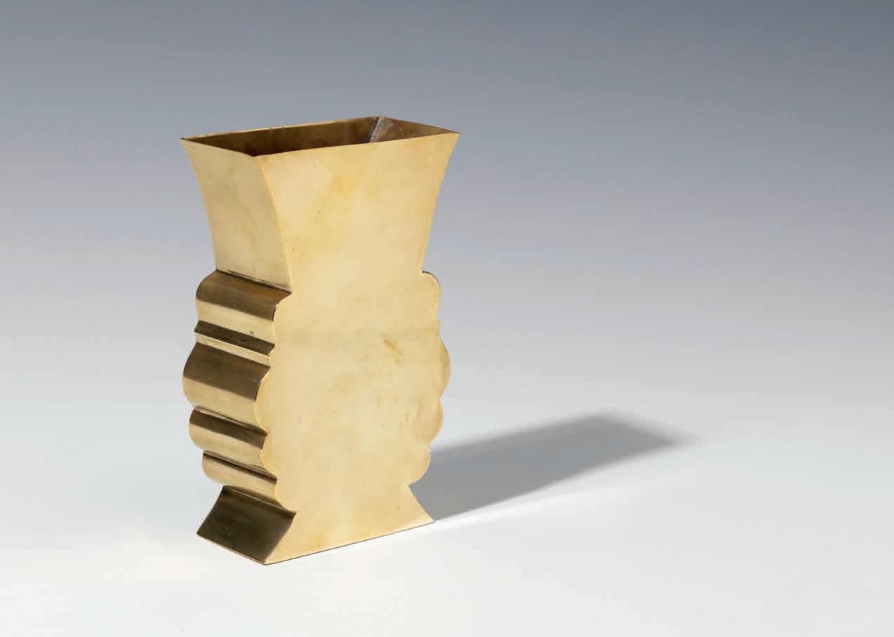 Wiener Werkstätte, um 1905 Silber, Glaseinsatz; auf der Unterseite gemarkt mit „WIENER WERKSTÄTTE“, Dianakopfpunze, „WW“, Handwerkermonogramm „KP“ für Karl Ponocny, Rosenmarke und Entwerfermonogramm „JH“; Glaseinsatz mit Sprung; H. 25,5 cm