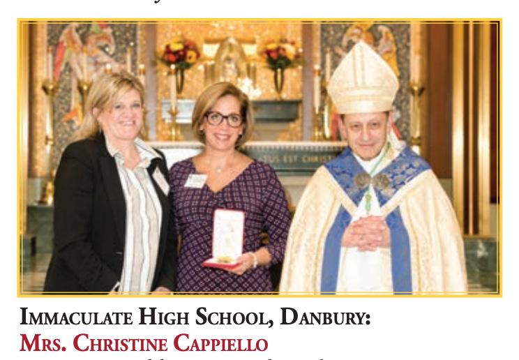 The Diocese of Bridgeport Office of the School Superintendent named Jen Doherty as its 2025 St. Elizabeth Ann Seton High School Teacher of the Year. This award recognizes a teacher who demonstrates a passion for teaching, a deep commitment to their faith and a loving dedication to their students and school communities.