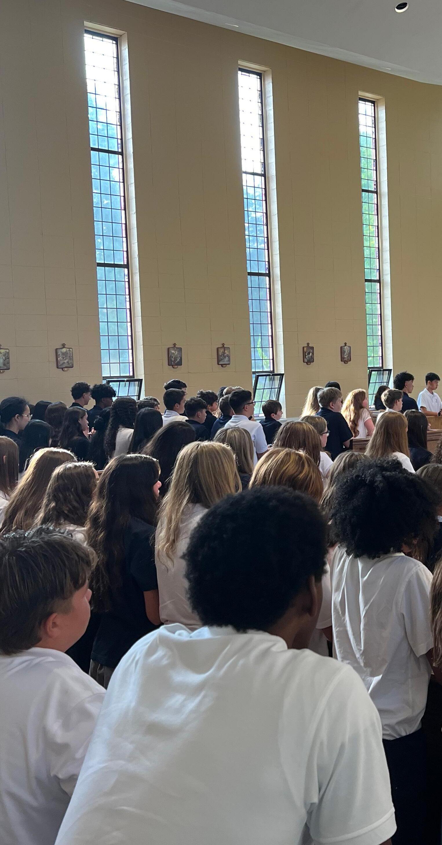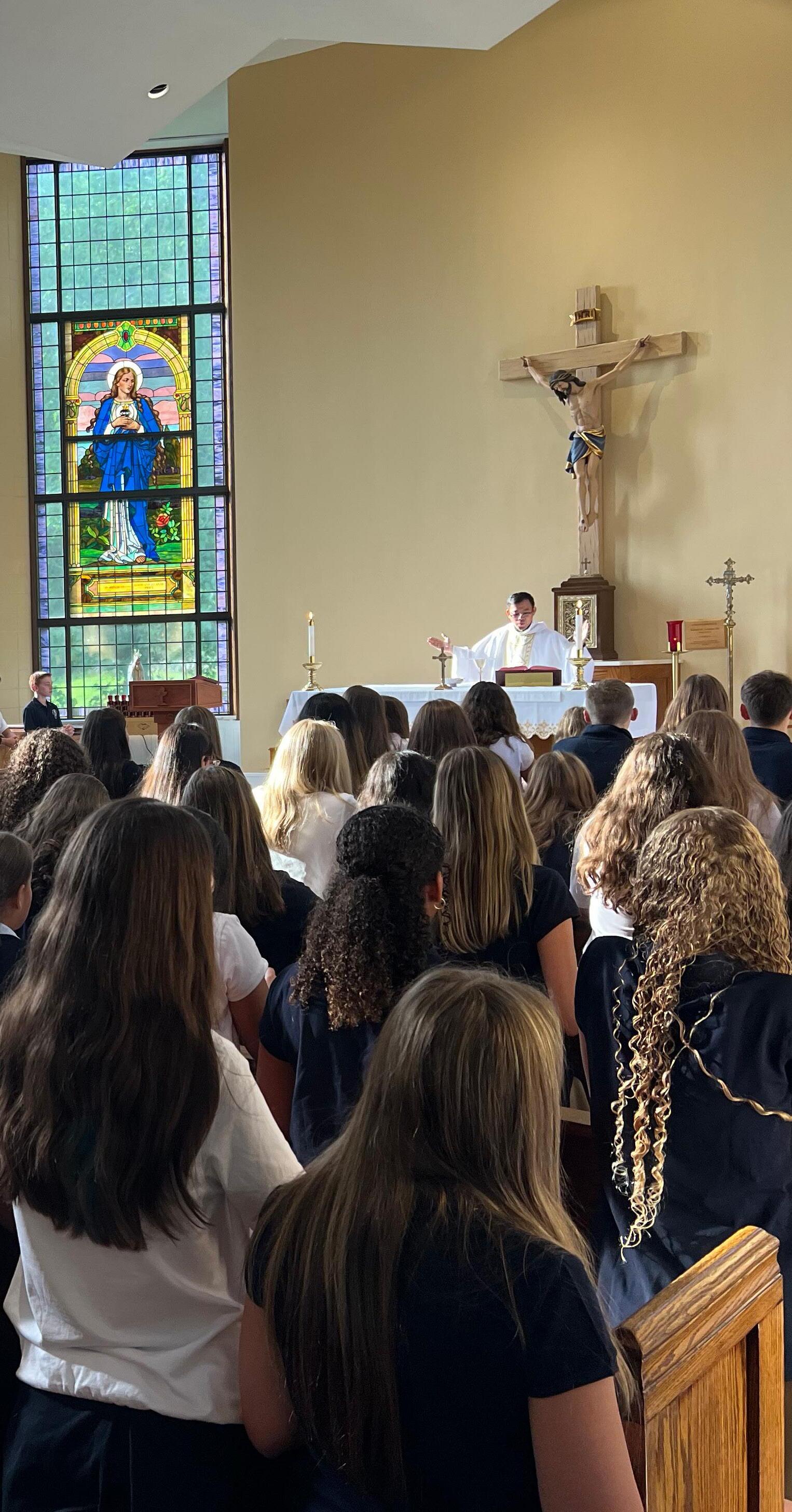 Photo courtesy of Kevin Skelly Class of 2028’s first day of school Mass.