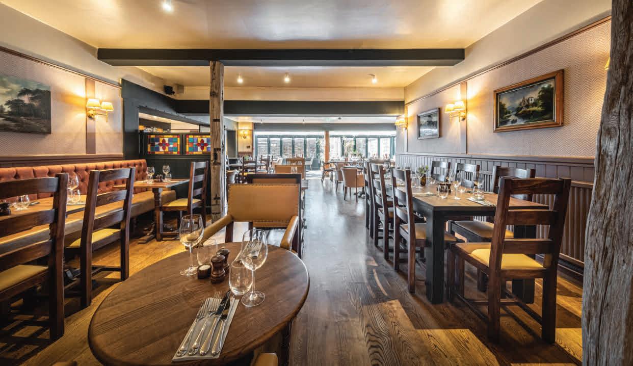 What isn’t apparent from the roadside is the depth of The Feathers. There are cosy nooks and crannies in the bar area at the front of the pub then you step up to a large dining area that stretches out to the rear and a small car park. A terraced area provides a pleasant corner for summer drinks.